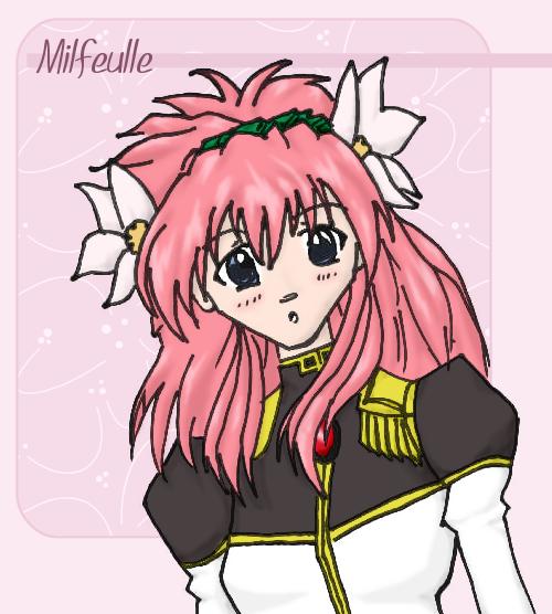 - blam! it's another fanart by the noiny-chan! Noin - 08 Apr 2003 03:05 pm Post subject: blam! it's another fanart by the noiny-chan! this is an entry for the april fandamonium. whaddya think? her name's milfuelle from galaxy angel. Guyver - 08 Apr 2003 03:07 pm Post subject: you draw that,,, thats damn good you got skillz Noin - 09 Apr 2003 04:26 pm Post subject: thankies other scans. i gave all my drawings away and kept the scans on a cd. and my cousin jumped on my cd case and broke it by accident. *is upset*